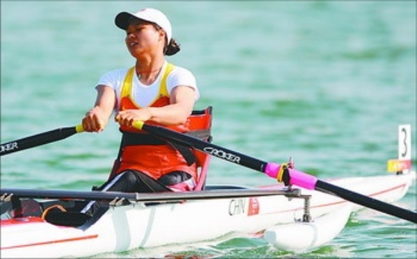 | 9月10日,中国选手张金红在顺义奥林匹克水上公园举行的北京2008年残奥会赛艇女子A级单人艇固定座位复活赛第二组比赛中,以6分43秒78的成绩列小组第一名,进入决赛。