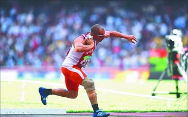 | 9月11日,北京2008年残奥会田径比赛在国家体育场进行,这是参加铅球比赛的选手在奋力一掷。 本报记者 赵 晶摄 |