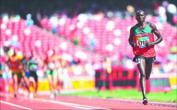 | 9月11日,肯尼亚选手亨利·基普罗诺·基鲁瓦在比赛中。当日,在国家体育场进行的北京2008年残奥会男子5000米T13级决赛中,基鲁瓦以14分24秒02的成绩夺冠。