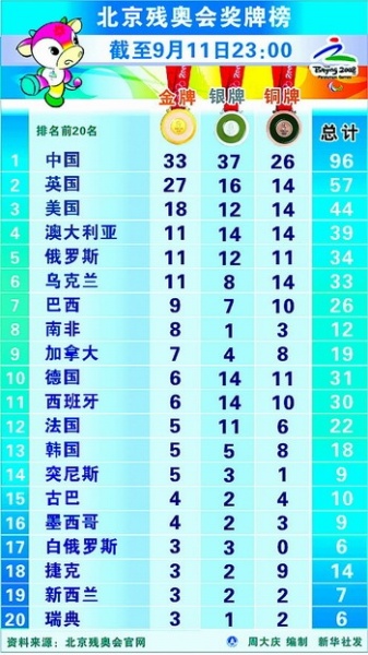 中央电视台12日北京残奥会播出内容安排