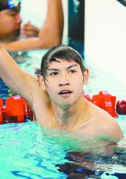 9月15日,中国队第四棒选手杨沅润到达终点。中国队在北京2008年残奥会男子4×50米混合泳接力决赛中,以2分33秒15的成绩打破世界纪录并获得冠军。 新华社记者 陈 凯摄