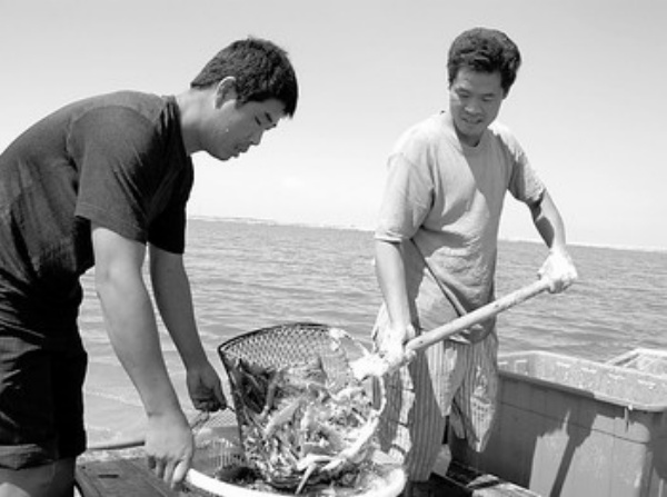 日前,山东省无棣县马山子镇两位渔民正在收获对虾。近年来,无棣县大力发展“海洋循环经济”,取得较好的经济效益。今年,该县36万亩虾池可收获对虾1000余万公斤,总产值5.6亿元。 邢金锋摄 (中经网供图)