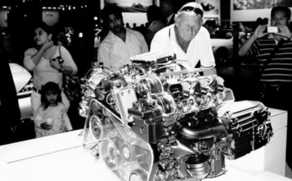 随着近年来国际油价的持续走高,盛产石油的海湾国家居民人均购买力大幅提升,汽车消费水平提高。鉴于市场竞争日趋激烈,奔驰、宝马等品牌纷纷加大了在当地的宣传营销力度,各类推广演示活动不断,而旗下产品的科技内涵则成为各公司的宣传亮点。图为迪拜一家奔驰展厅展出的650马力新型高科技增压发动机实体模型吸引了参观者的目光。 本报驻阿布扎比记者 经 凯摄影报道