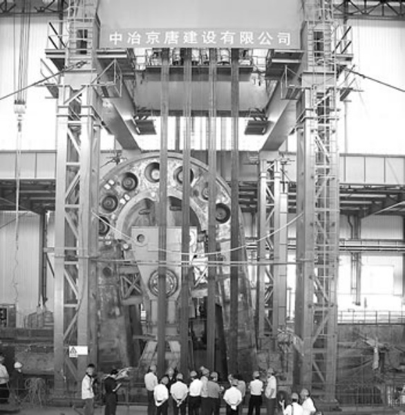 内蒙古世界上最大垂直挤压机机架吊装就位