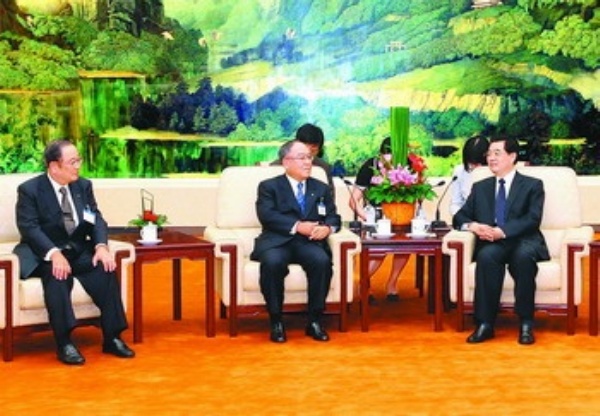胡锦涛高度赞赏日中经济协会为促进两国经贸合作,推动中日关系改善和发展作出的重要贡献,感谢日本各界对中国抗震救灾提供的宝贵援助和对北京奥运会、残奥会给予的大力支持。