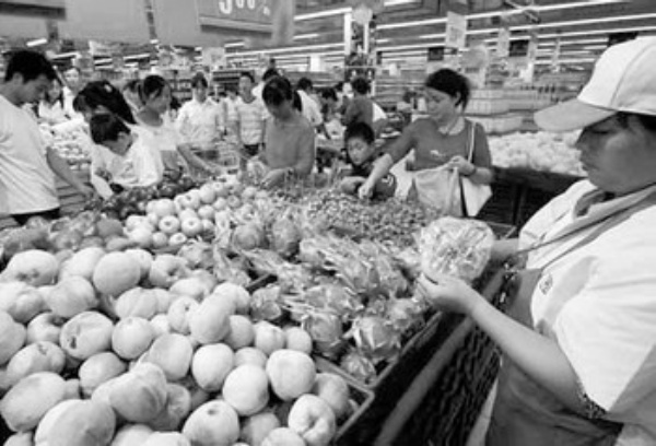 图为正在百联集团下属超市里展销的上海奉贤名特优农副产品。 上海市奉贤区现代都市农业经过几年的发展,如今已形成虾类、蔬菜、黄桃、西甜瓜、种子、流通与加工、农业旅游等八大产业,各类农民专业合作社180家,农业产业化龙头企业50多家,特种水产、食用菌、特色瓜果花卉及珍禽为主的四大农业支柱产业已成规模,这其中食用菌、虾类、珍禽的生产规模及产量位居