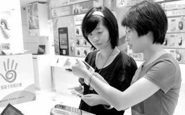 作为杭州市“打造中国电子商务之都”的一项重要内容,中国移动浙江公司杭州分公司和杭州酷宝科技公司合作推出了一种全新的商业模式:移动商务应用。图为业务人员在营业厅为客户演示移动商务。 萧 鸣摄