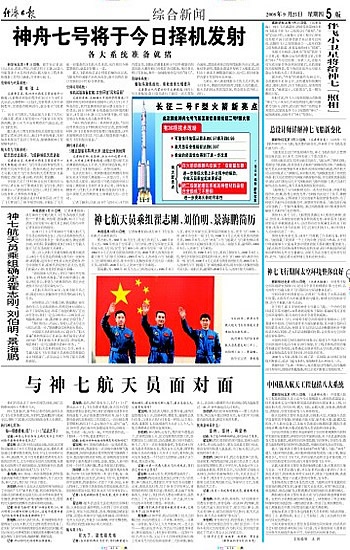 神舟七号将于今日择机发射