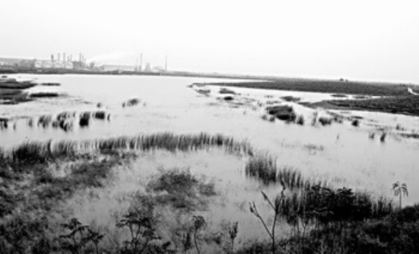 这是内蒙古鄂尔多斯毛乌素沙漠腹地的人工湿地,远处是依托于苏里格气田建设的100万吨级天然气制甲醇生产企业内蒙古博源联合化工有限公司。通过发展循环经济和生态改良,毛乌素沙漠腹地已经有20平方公里的面积实现了绿化。 本报记者 刘志奇摄