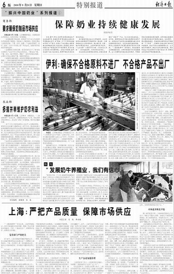 伊利:确保不合格原料不进厂 不合格产品不出厂