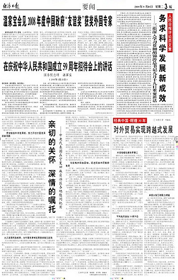 温家宝会见2008年度中国政府“友谊奖”获奖外国专家