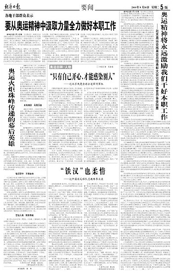 奥运精神将永远激励我们干好本职工作