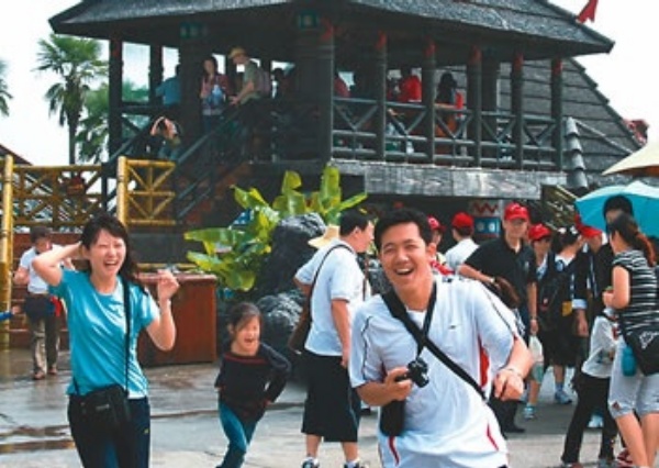 上图 10月2日,游客在桂林乐满地主题乐园游玩。国庆黄金周广西桂林日接待游客量持续走高。 新华社记者 韩 墨摄