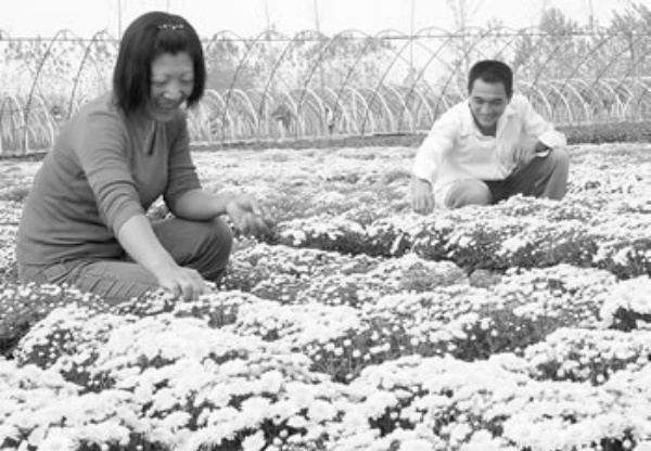 9月21日,山东郯城县郯城镇榆林二村花卉基地内,花农们正在精心管理即将销往济南的“千头菊”。国庆节期间,郯城县各花卉基地内生意十分红火,国庆花卉市场出现热销局面。 张春雷摄 (中经网供图)
