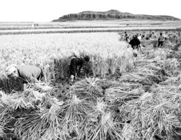 10月5日,贵阳花溪的苗家人在田里收割稻谷。 国庆黄金周期间,地处高海拔的贵阳花溪高坡乡云顶村一带正值稻谷收割时节,当地农民抓紧时机抢收稻谷,力保颗粒归仓。 秦 刚摄(新华社发)