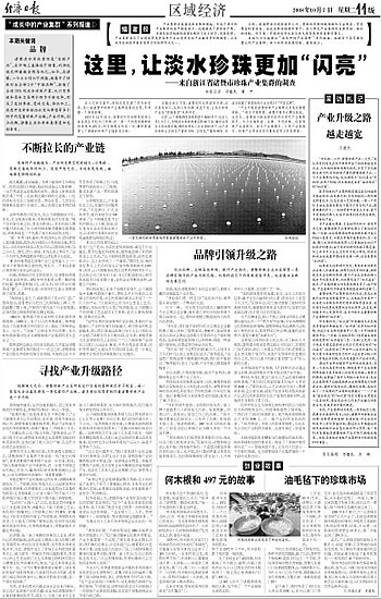 “这些年来的发展使我们认识到,本地的产业链越长,产业的发展空间就越大,农民致富的机会就越多,所以我们要通过政策引导千方百计地拉长产业链。”诸暨市市长王继岗说,近年来,诸暨市着力打造省级特色工业园区————山下湖珍珠产业园区,已吸引入园企业50家,中外合资企业21家,同时投资30亿元建设华东国际珠宝城,进一步奠定诸暨市全球淡水珍珠集散中心的地位。