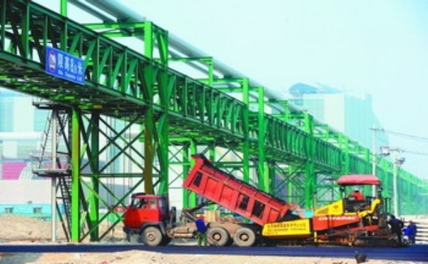 10月13日,工人在首钢京唐钢铁厂紧张施工。经过三年的建设,位于河北曹妃甸的首钢京唐钢铁联合有限责任公司钢铁厂目前已初具规模,将在2008年底前开始投产,形成485万吨的生产能力。首钢京唐钢铁项目是纳入国家“十一五”规划纲要的重点项目,是首钢搬迁调整的重要载体工程。 新华社记者 罗晓光摄