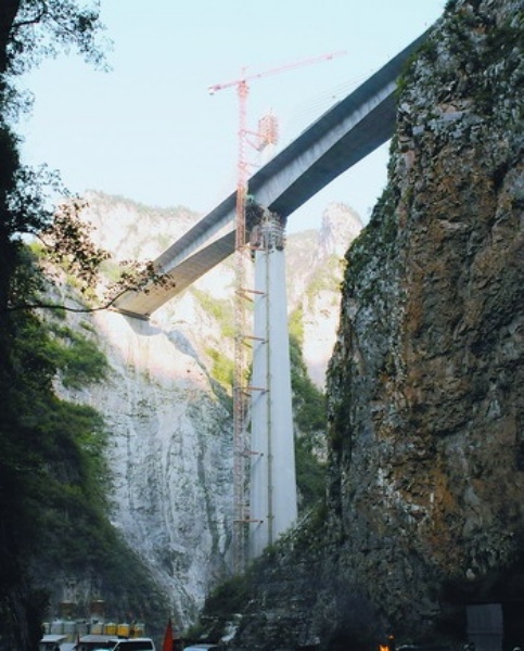 这是晋(山西晋城)济(河南济源)高速公路仙神河大桥建筑工地。十月十三日,晋济高速公路仙神河大桥项目主体完工。晋济高速公路计划于二OO八年十二月底竣工通车。 新华社记者 吕晓宇摄