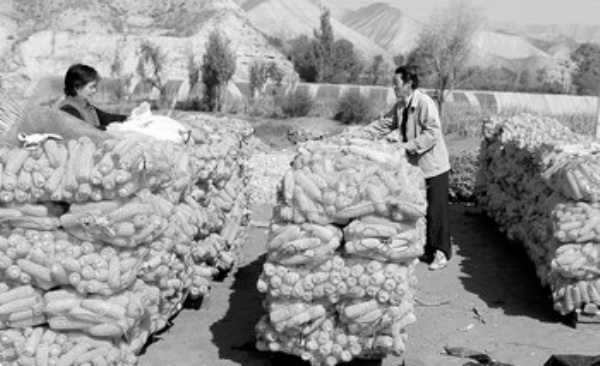 甘肃省靖远县北湾镇农民准备外销玉米(10月13日摄)。
