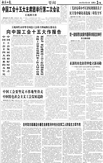 中国工会十四大以来的五年是中国工会发展的最好时期之一