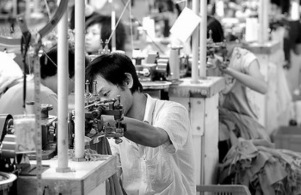 广东东莞大朗镇出口加工毛织企业茂荣集团,加强企业内部管理,使企业竞争力增强。图为工人在生产线上工作。 新华社记者 刘大伟摄