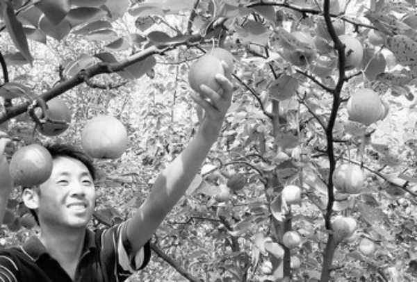 山东梁山县马营乡农民在县林业局的积极扶持下,利用荒滩荒地和房前屋后的边边角角种植梨树500余亩,成为农民增收的新途径。 杨玉建摄 (中经网供图)