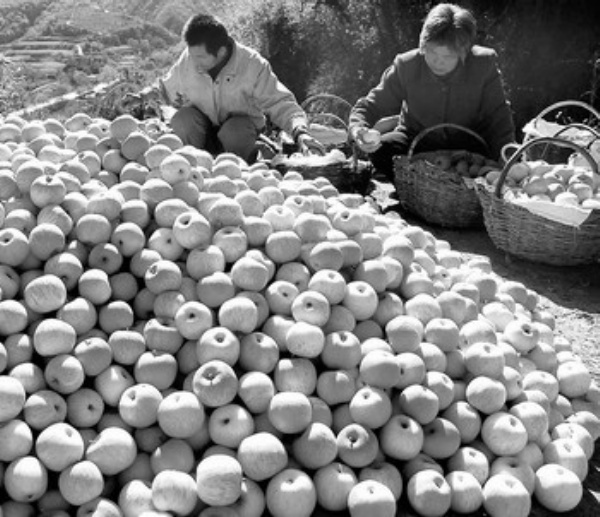 下图 10月23日,延安市宝塔区果农在山地果园挑选优质苹果。金秋时节,陕西省延安市宝塔区40万亩山地苹果喜获丰收,色泽艳丽、口味浓郁的大红苹果“映红”了黄土高原。 祁小军摄(新华社发)