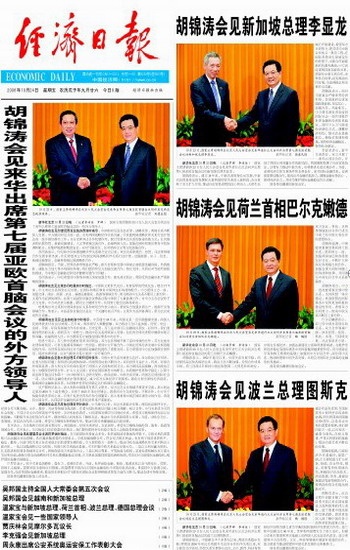 胡锦涛会见来华出席第七届亚欧首脑会议的外方领导人