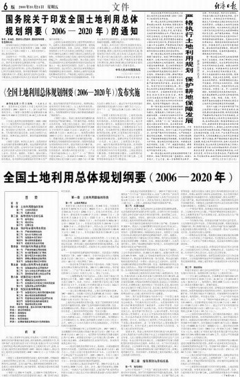《全国土地利用总体规划纲要(2006—2020年)》发布实施