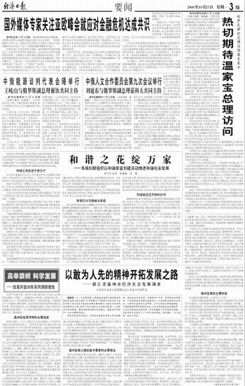 国外媒体专家关注亚欧峰会就应对金融危机达成共识