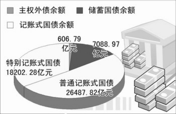 报告指出,我国国债结构较为合理。从国债品种结构来看,今年6月末我国主权外债余额为606.79亿元,占全部国债余额的1.16%;储蓄国债余额为7088.97亿元,占13.53%;记账式国债余额为44690.10亿元,其中包括26487.82亿元普通国债和18202.28亿元特别国债,占85.31%。