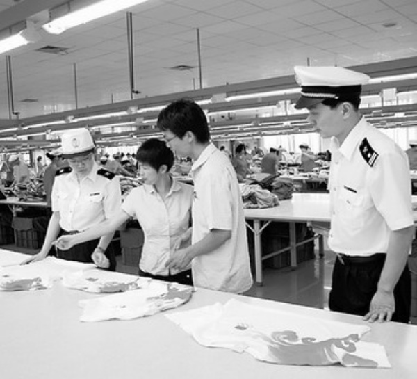 宁波海关关员到宁波申洲针织有限公司了解生产情况。 郑科摄