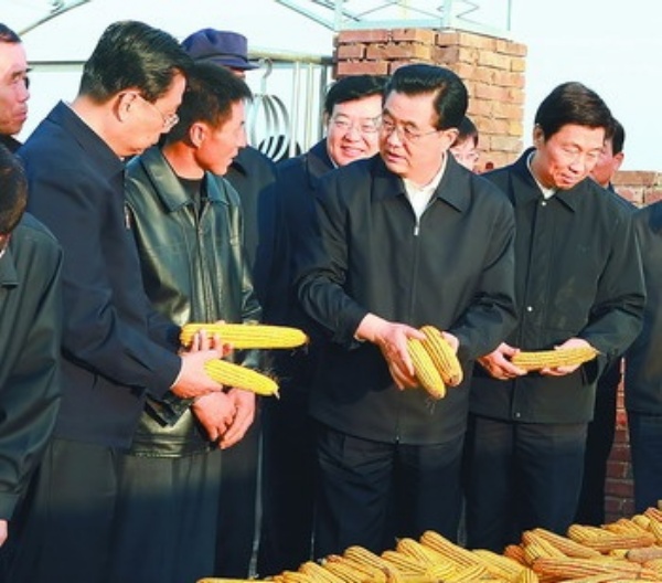 胡锦涛脸上露出了笑容,他说:“民以食为天。我们国家有13亿人口,粮食问题始终是头等大事。前不久召开的党的十七届三中全会出台了一系列扶持粮食生产的政策措施。今后,国家给种粮农民的优惠会越来越多,粮食最低收购价会稳步提高,种粮补贴会逐步增加,真正让农民兄弟从种粮中得到更大的收益。”