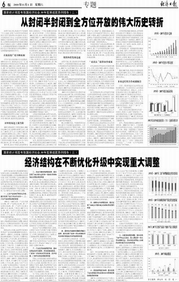 在货物贸易规模迅速增长的同时,结构也不断优化。从出口商品结构看,30年来,从以初级产品为主到以工业制成品为主,以轻纺等劳动密集型产品为主到以机电和高新技术产品等资本技术密集型产品为主,我国出口商品结构不断优化升级。1978年初级产品出口占53.5%,工业制成品出口占46.5%。2007年,初级产品和工业制成品所占比重转变为5.1%和94.9%,工业制成品占据了我国出口商品的绝对主导地位。在工业制成品出口中,机电产品占出口总额的比重持续提高,在我国出口贸易中的主导地位日益明显。