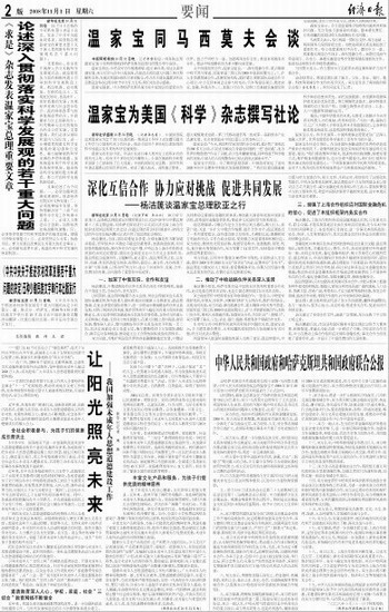 温家宝为美国《科学》杂志撰写社论