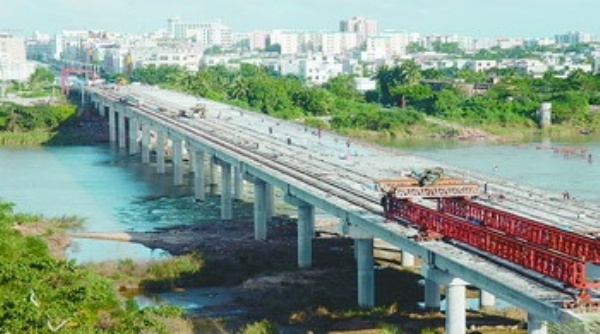 11月2日拍摄的合龙后的海南琼海嘉积大桥。当日,经过一年的紧张施工,横跨海南琼海万泉河的嘉积大桥合龙。新改建的嘉积大桥是海榆东线223国道琼海至万宁段改建工程的重点工程之一。 蒙钟德摄 (新华社发)