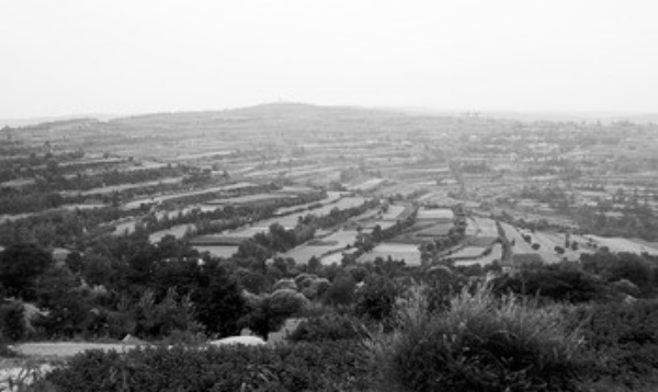 碧水静卧沟底塘坝,庄稼环绕山腰梯田。