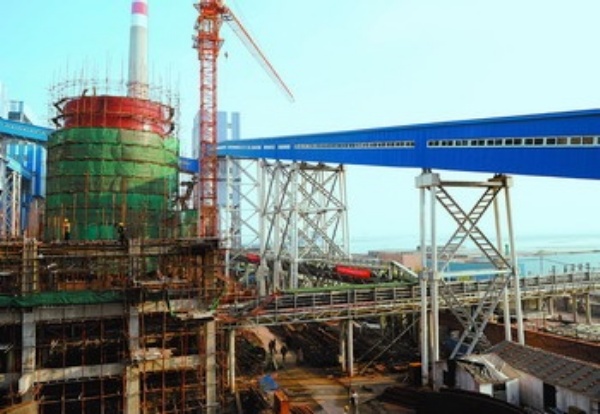 这是天津大港电厂3、4号机组脱硫设施施工现场。天津大港电厂投资3亿多元的3、4号机组脱硫设施建设项目近日启动,预计2009年底项目建成投产后,全厂的烟气脱硫率将大于97.2%,极大地提高节能减排效果。 新华社记者 王晔彪摄