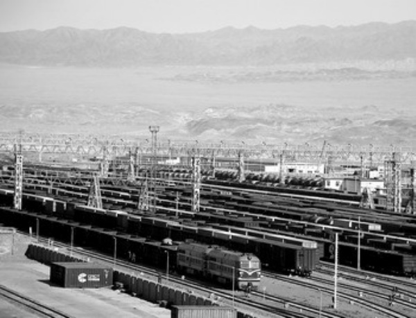 11月4日拍摄的新疆中铁集装箱阿拉山口站换装库外等待换装货物的列车。近日,亚洲最大的集装箱换装库———中铁集装箱阿拉山口站换装库落成。换装库总面积达1.97万平方米,年换装能力达20万标准箱。它的建成将彻底解决受大风影响不能进行换装而降低口岸过货效率问题,今后可以全天候进行换装作业。 沈志君摄(新华社发)