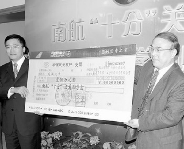 10月31日,中国南方航空公司“十分”关爱基金会向武汉大学捐赠100万元励学金,资助该校家庭经济困难、品学兼优的大学生。截至目前,全国已有北京大学、清华大学等20多所高校、5000余名大学生接受该基金会捐助,总金额1200余万元。 本报记者 郑明桥 通讯员 沈蕾摄