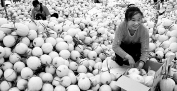 菜农包装甜瓜准备送往集市。 王晓光摄