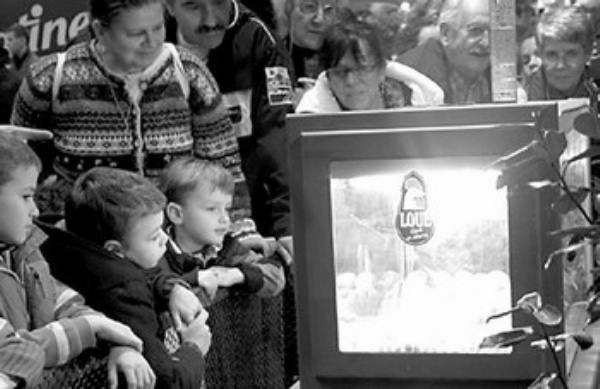 图2 在农业博览会上,孩子们聚精会神地观看孵小鸡的过程。
