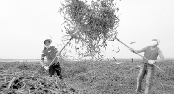 11月6日,吐鲁番市几位农民在晾晒辣椒。