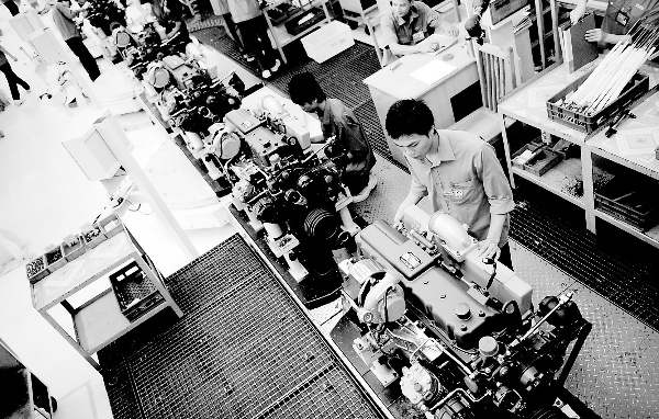 经过50多年的发展,广西玉柴集团由单一工厂经营发展成为通过投资与经营管控相结合的集团化经营,是跨地区、跨行业、多品种、多元化经营的企业集团,已拥有33家全资、控股、参股子公司,员工18000多人,总资产119亿元。该集团遵循“绿色发展,和谐共赢”核心理念,秉承“超前构思,领先适用”的产品设计理念,在研发动力性、节能性、环保型兼具的发动机方面不遗余力。玉柴集团创建于1951年,其前身是“玉林泉塘工业社”,主要以手工生产为主。目前,玉柴集团已发展成为以柴油发动机、工程机械、汽车零部件、汽车化工、物流机电和专用汽车6大板块为核心业务的大型企业集团,并享有“中国动力第一品牌”美誉。 新华社记者 朱 祥摄
