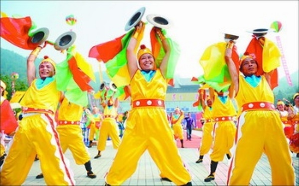 遵义娄山威风锣鼓队的队员们正在表演节目。遵义市着力抓好社区文化建设,群众文化活动丰富多彩,营造出健康向上、欢乐和谐的文化氛围。