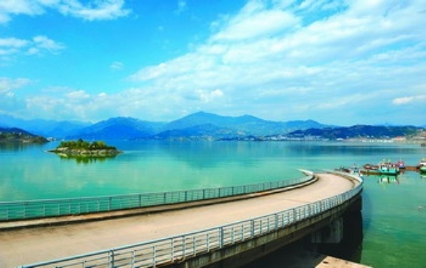 三峡工程完成试验性蓄水任务后的坝上平湖。11月4日,三峡工程坝前水位达到海拔高程172.3米,2008年试验性蓄水任务完成。 新华社记者 杜华举摄
