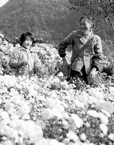 11月9日,村民在黄山地区黄山贡菊花茶地采摘贡菊花。目前,正是黄山贡菊花成熟之际,山间路旁,或是片片金黄,或是片片银白,处处风景无限。 新华社记者 张燕辉摄