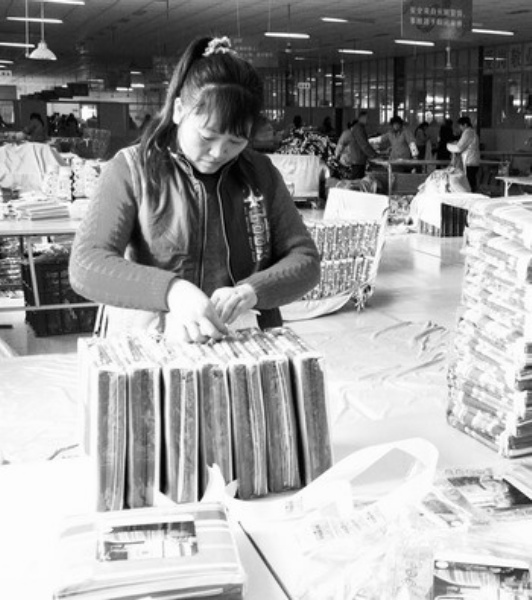 江苏晨啸国际集团海聆梦家纺有限公司的员工在包装产品。该公司根据国际市场行情调整产品结构,取得良好效益。 古 凯摄(中经网供图)