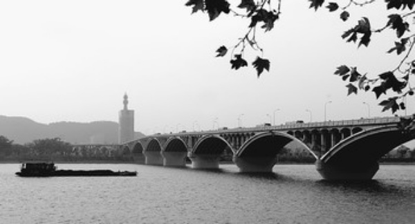 11月10日,一艘货船准备驶过湘江橘子洲大桥。