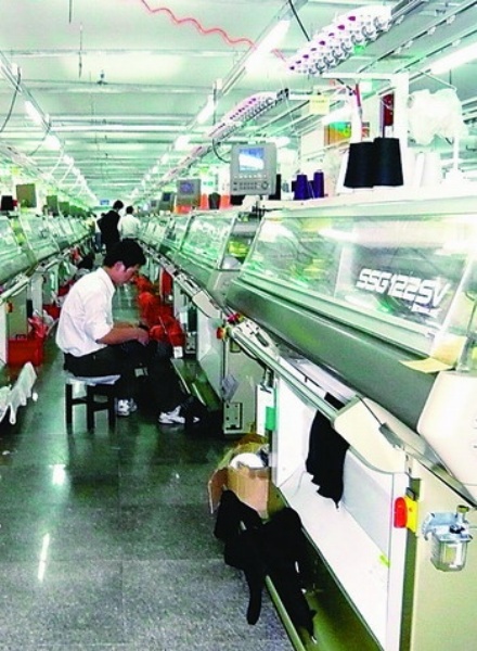 11月9日,广东东莞市颖祺实业有限公司的车间内员工正在加班加点赶制出口的毛纺品。 本报记者 王晋摄